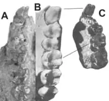 Kenyapithecus wickeri is a fossil ape discovered by Louis Leakey in 1961 at a site called Fort Ternan in Kenya. The upper jaw and teeth were dated to 14 million years ago. One theory states that Kenyapithecus may be the common ancestor of all the great apes.