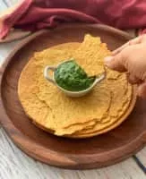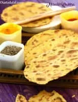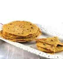 Khakhra is a thin cracker common in the Gujarati and Rajasthani cuisines of western India, especially among Jains. It is made from mat bean, wheat flour and oil. It is served usually during breakfast.