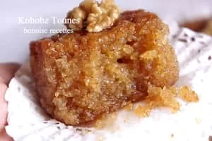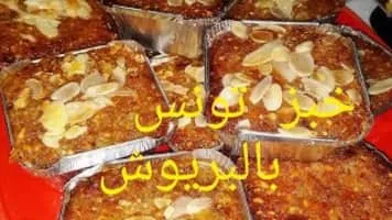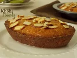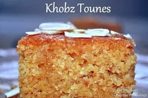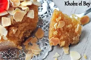 Khobz tounes, also called khobz el bey, is an Algerian cake made from almond meal and breadcrumbs, soaked in a syrup flavored with orange flower water. The cake dates from the Algeria's Ottoman period. It is commonly consumed during Ramadan.