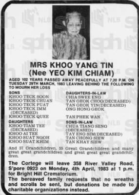 | Children | Khoo Teck Puat |