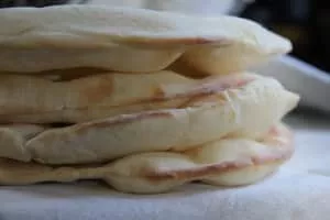 Khubz, alternatively spelled khoubz, khobez, khubez, or khubooz, also known as Arabic bread, Lebanese bread, or Syrian bread, is a round leavened Middle Eastern flatbread, that forms a staple of the local diet from the Arabian Peninsula to Morocco. It originated in the Middle East.