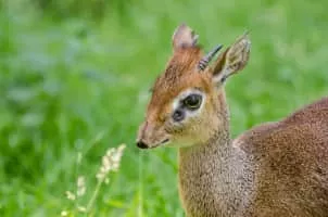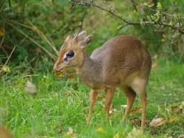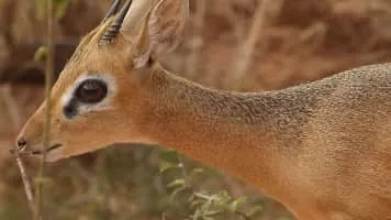 Kirk's dik-dik is a small antelope native to Eastern Africa and one of four species of dik-dik antelope. It is believed to have six subspecies and possibly a seventh existing in southwest Africa. Dik-diks are herbivores, typically of a fawn color that aids in camouflaging themselves in savannah habitats.