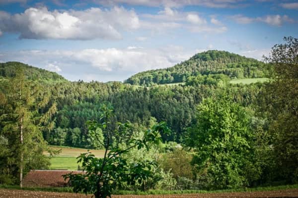 The Kleiner Kulm is a mountain in Bavaria, Germany. The mountain has a height of 626 m and thereby is the highest point of the Franconian Switzerland. On top, there is a lookout tower of 11 metres, which gives a view over the surrounding landscape.