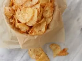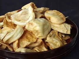 Kripik or keripik are Indonesian chips or crisps, bite-size snack crackers that can be savoury or sweet. They are made from various dried fruits, tubers, vegetables, and fish that have undergone a deep frying process in hot vegetable oil. They can be lightly seasoned with salt, or spiced with chili powder and sugar.