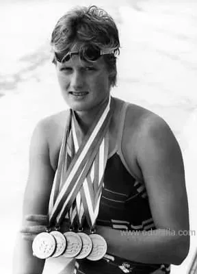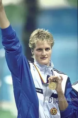 Kristin Otto is a German Olympic swimming champion. She is most famous for being the first woman to win six gold medals at a single Olympic Games, doing so at the 1988 Seoul Olympic Games. In long course, she held the world records in the 100 meter and 200 meter freestyle events.