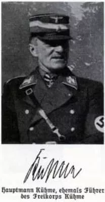 Kühme, Kurt, born 27-08-1885 in Lötzen, East Prussia, entered the Army as cadet in the 174th Infantry Regiment, age 17, on 22-03-1903. He was in the fields of the first war as a Company Chief in the 174th Infantry Regiment and retired in Mai 1920 and became the leader of Freikorps Kühme.
