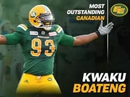 Kwaku Boateng is a Canadian football defensive end for the Hamilton Tiger-Cats of the Canadian Football League. He played U Sports football for the Wilfrid Laurier Golden Hawks.