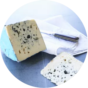 Lanark Blue is a sheep milk cheese produced in Lanarkshire, Scotland. Produced at Ogcastle near to the village of Carnwath by Humphrey Errington since 1985, it is a rich blue-veined artisan cheese.