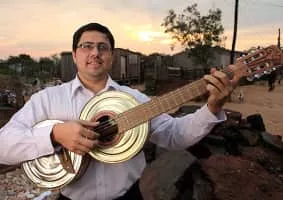 Music director Favio Chavez guides the Recycled Orchestra of Cateura, a Paraguayan group that plays instruments made entirely out of garbage.