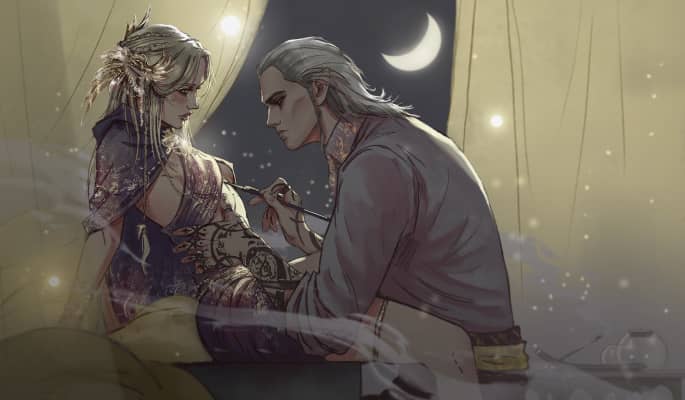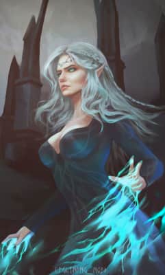She was an elven sorceress who fell in love with Cregennan of Lod, a mighty human mage, after the Conjunction of the Spheres. Their union was very controversial for both races. After Cregennan died, Lara gave birth to their daughter, but died herself soon after, orphaning the child.