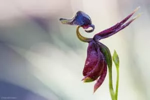 Caleana major, commonly known as the large duck orchid, is a small orchid found in eastern and southern Australia. This terrestrial plant features a remarkable flower, resembling a duck in flight.