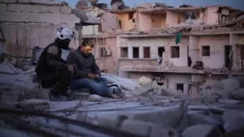 Following members of the volunteer group White Helmets, who offer aid to the wounded during the Syrian civil war.