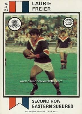 Laurie Freier is an Australian former professional rugby league footballer and coach. He played in Sydney's NSWRFL Premiership for the Eastern Suburbs and Manly-Warringah clubs during the 1970s, later coaching Easts as well as the Western Suburbs Magpies during the 1980s.