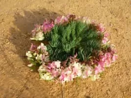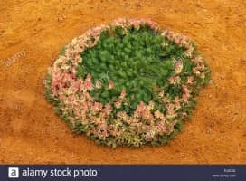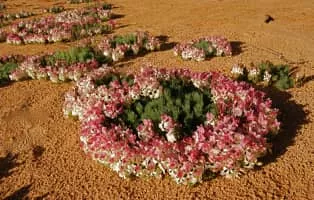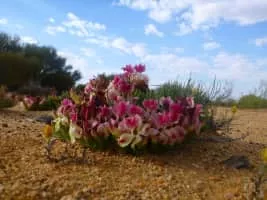 Lechenaultia macrantha is a species of low growing plant found on sandy or gravelly soils in Western Australia. The species, when viewed from above, has a wreath-like form during its flowering period around August to November.