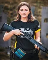 Lena Miculek is an American practical sport shooter who took gold medal at the 2017 IPSC Rifle World Shoot in the Open division, Lady category, and three gold medals in the IPSC Shotgun Standard division, Lady category, from the 2012, 2015 and 2018 IPSC Shotgun World Shoot.