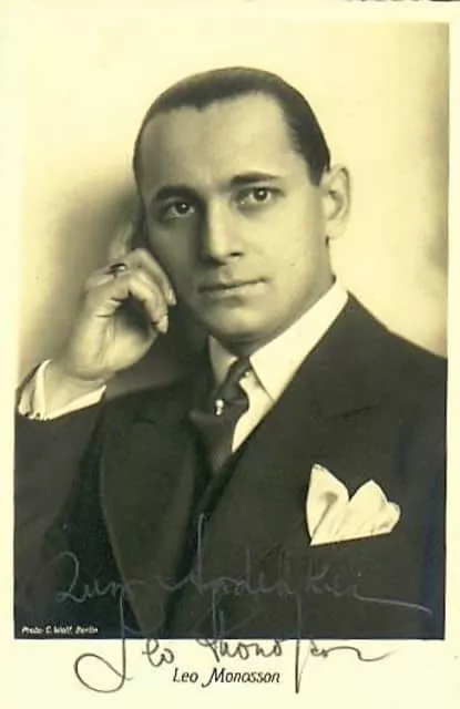 Leo Monosson was a tenor singer born in Moscow, who found fame in Germany in the years 1928-1933. He spoke eleven languages and produced over 1400 records, one of his best-known being "Liebling, mein Herz lässt dich grüßen" with the Ben Berlin Orchestra.
