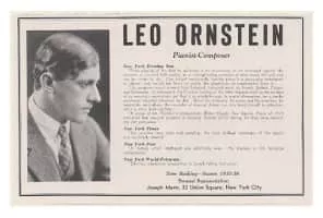 Leo Ornstein was an American experimental composer and pianist of the early twentieth century. His performances of works by avant-garde composers and his own innovative and even shocking pieces made him a cause célèbre on both sides of the Atlantic. The bulk of his experimental works were written for piano.