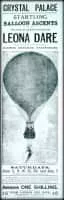 Leona Dare was an American trapeze artist and aerial acrobat, billed often as the "Queen of the Antilles" or the "Pride of Madrid". She was famous for her stunts on trapezes suspended from ascending balloons. Leona Dare's real name was Susan Adeline Stuart or Stewart.