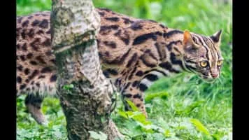 The leopard cat is a small wild cat native to continental South, Southeast and East Asia. Since 2002 it has been listed as Least Concern on the IUCN Red List as it is widely distributed although threatened by habitat loss and hunting in parts of its range.