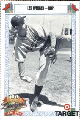 Lester Elmer Webber was an American Major League Baseball right-handed pitcher who played for six seasons. He played for the Brooklyn Dodgers from 1942 to 1946 and the Cleveland Indians in 1946 and 1948. In 154 career games, Webber pitched 432 innings and had 23 wins, 19 losses, and a 4.19 earned run average.