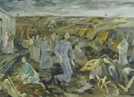 Leslie James Cole was a British artist and teacher. He served as a war artist from 1942 to 1946 during which time he recorded events in several theatres of war and also the aftermath of the liberation of the Bergen-Belsen concentration camp.