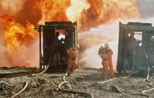 Retreating from Kuwait after the first Gulf War, the Iraqi army sets fire to the country's oil fields. In this documentary, filmmaker Werner Herzog films the raging flames while narrating from the perspective of a confused alien visitor, musing on the strangeness of the landscape. As the fires burn, helicopter shots display the extent of the damage. On the ground, firefighters do their best to control things, while Kuwaiti women recount atrocities perpetrated by the Iraqis. …