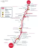 | Line length | 340 km (210 mi): 302 km (188 mi) (newly built); + 38 km (24 mi) (connection to existing network) |