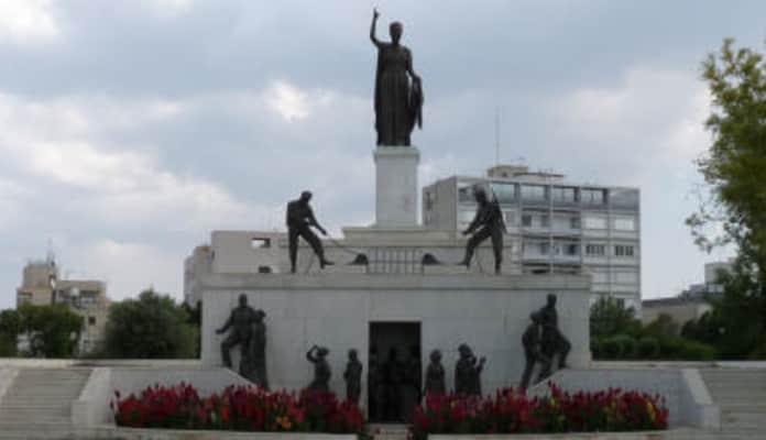 The Liberty Monument is a monument in the city of Nicosia in Cyprus. The Liberty Monument was erected in 1973 to honor the anti-British EOKA fighters of the Cyprus Emergency of 1955–1959. It is located at the Podocattaro Bastion of the Venetian walls. The large monument contains several statues.
