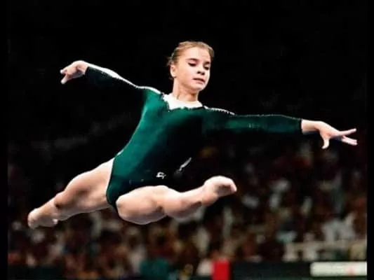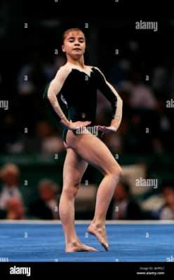 Lilia Oleksandrivna Podkopayeva is a Ukrainian former artistic gymnast. She is the 1995 world all-around champion, and the 1996 Olympic all-around and floor exercise champion. Often thought of as a complete athlete, Podkopayeva was known for combining power, style, and balletic grace.