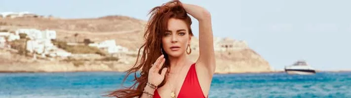 A prominent American actress and businesswoman, Lindsay Lohan, manages her beach club in Mykonos, Greece, and shares her future career plans.