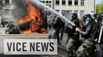 ...In the centre of the Lithuanian capital Vilnius, a large banner is taped to a tall building, above a Ukrainian flag, that reads: " Putin, the Hague is waiting for you...