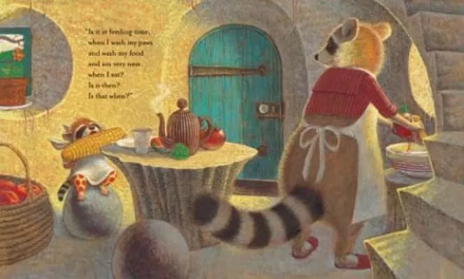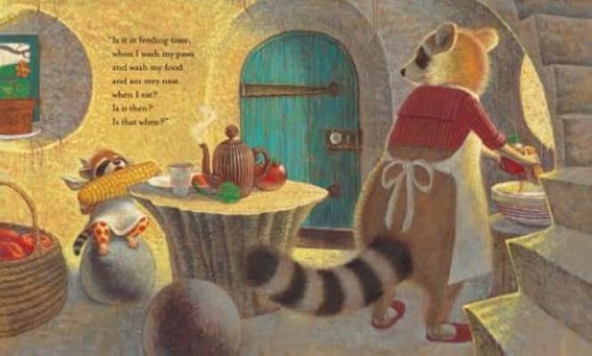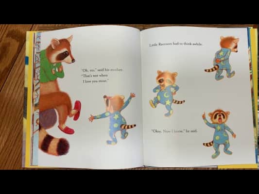 When Little Raccoon asks his mother when she loves him the most, she finally answers "always right now."