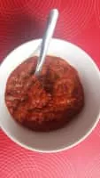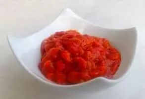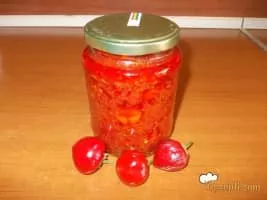 Ljutenica, lyutenitsa or lutenica is a vegetable relish or chutney in Bulgarian, Macedonian and Serbian cuisines. The ingredients include peppers, carrots, garlic, vegetable oil, sugar, salt, and tomatoes. It comes in many varieties: smooth; with bits; with small spicy peppers or eggplant; and spicy or mild.