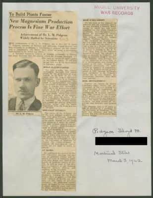 Lloyd Montgomery Pidgeon, OC MBE was a Canadian chemist who developed the Pidgeon process, one of the methods of magnesium metal production, via a silicothermic reduction. He is considered the "father" of academic metallurgical research in Canada.