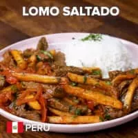 Lomo saltado is a popular, traditional Peruvian dish, a stir fry that typically combines marinated strips of sirloin with onions, tomatoes, french fries, and other ingredients; and is typically served with rice.
