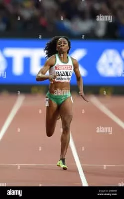 Lorène Dorcas Bazolo is a Congolese-Portuguese track and field athlete from Brazzaville. She is the national record holder in the 100 metres, with a time of 11.72 seconds. She was the congolese flag bearer at the 2012 Summer Olympics.
