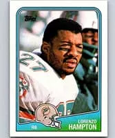 Lorenzo Timothy Hampton is an American former college and professional football player who was a running back in the National Football League for five seasons during the 1980s. Hampton played college football for the University of Florida, and thereafter, he played professionally for the Miami Dolphins of the NFL.