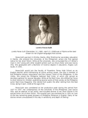 Loreto Paras-Sulit was a Filipino writer best known for her English-language short stories.