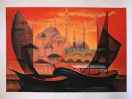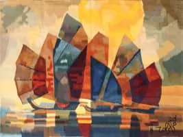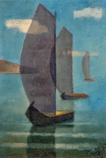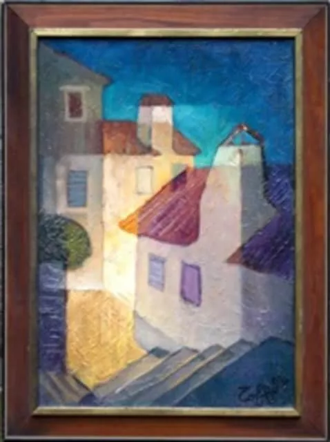 Louis Toffoli was a French painter, best known for his colorful, fractural figural and landscape paintings. Toffoli's work is concerned with transparency, often breaking his faceless figures down into various overlapping parts to facilitate a ghostly, dream-like appearance that addresses the transitory quality of life.