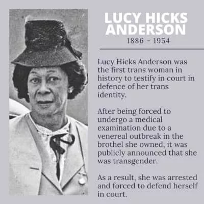 Lucy Hicks Anderson was an American socialite and chef, best known for her time in Oxnard, California, from 1920 to 1946. Assigned male at birth, she was adamant from an early age that she was a girl. Her parents, based on advice from doctors, supported her decision to live as one.