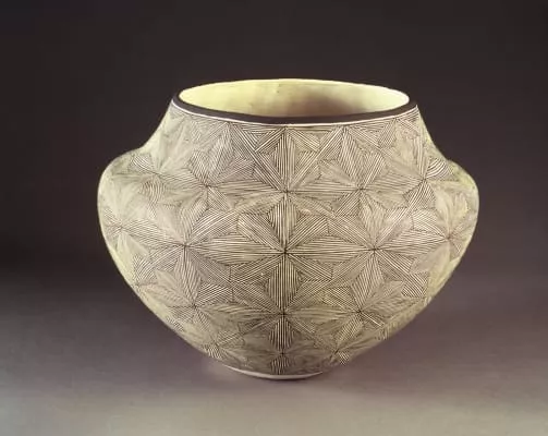 Lucy Martin Lewis was a Native American potter from Acoma Pueblo, New Mexico. She is known for her black-on-white decorative ceramics made using traditional techniques.