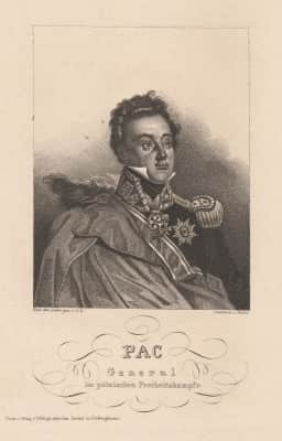 Count Ludwik Michał Pac was a France-born commander in the Grande Armée, the Army of the Duchy of Warsaw and the Uprising of 1831. Depending on the source, he is called Lithuanian or Polish. He was one of the last representatives of the noble Pac family.