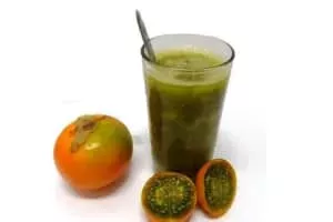 Lulada is a traditional Colombian beverage from Cali, in the Valle del Cauca Department of Colombia. It is prepared from lulo, a fruit common to the region, lime juice, water, and sugar for sweetness. It often has the texture and consistency of a smoothie and is sometimes served with a shot of vodka.