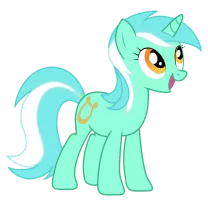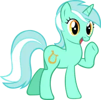 Lyra Heartstrings, occasionally called simply either Lyra or Heartstrings, is a female unicorn pony who frequently appears as a background character and occasionally in more prominent roles. She has a magic mint coat, brilliant cyan mane and tail with a white streak, sunglow eyes, and a cutie mark of a lyre.