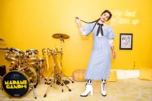 Kiran Gandhi, also known by her stage name Madame Gandhi, is an American electronic music producer, drummer, artist and activist. Gandhi's music career includes being a touring drummer for artists M.I.A., Thievery Corporation, and Kehlani. Her music and activism focuses on female empowerment and fourth-wave feminism.