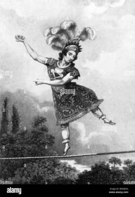 Madame Saqui was a noted French tightrope walker or "rope dancer." For a time she had her own theatre, which she had re-decorated. She continued to perform into her seventies. In her day, she was something of a celebrity.