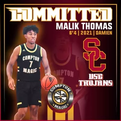 Biography. BREAKDOWN: Malik Thomas is a 6-5, 210-pound sophomore guard who can score at all three levels and excels on the defensive end. 2021-22: Thomas played in nine games with an average of 2.0 minutes of action in each. HIGH SCHOOL: Thomas graduated from Damien HS in La Verne, Calif.