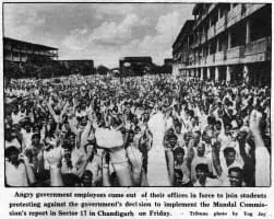 Mandal commission protests of 1990 were against reservation in government jobs based on caste in India.