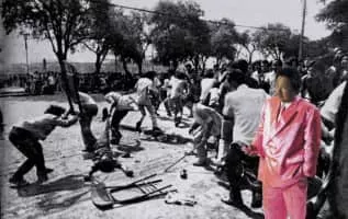 Manit Sriwanichpoom is a Thai photographer, writer, contemporary artist and social activist. His notable work is a photo set called Pink Man. The set consists of photos of a man in pink silk tuxedo and his pink shopping cart shot in different locations around the world.