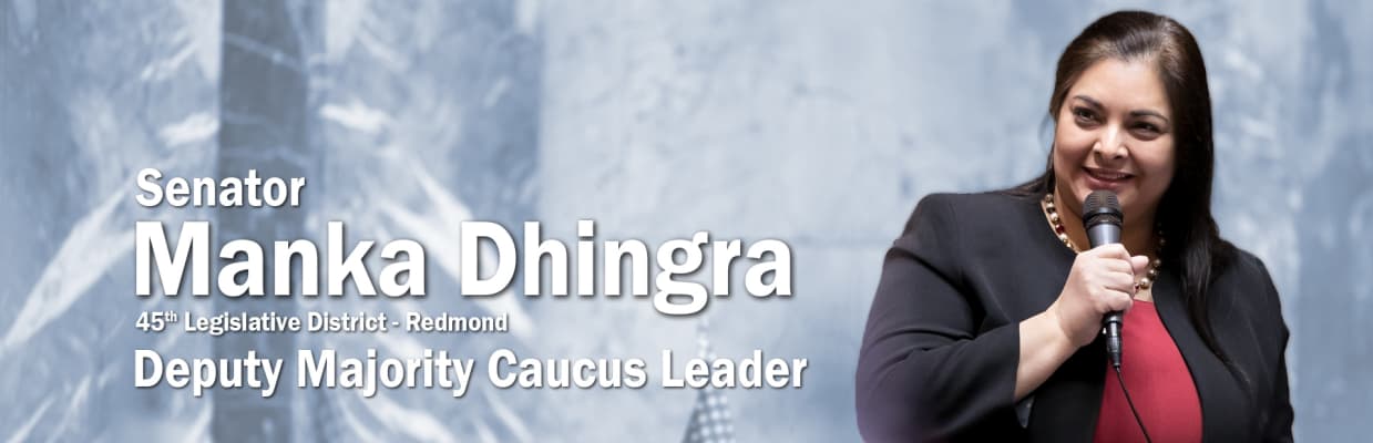 Manka Dhingra is an Indian-American attorney and politician who is a Washington State senator. A member of the Democratic Party, she was elected to represent the 45th legislative district, on Seattle's Eastside in King County, during a 2017 special election.